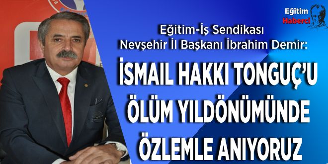 Eğitim-İş Sendikası Nevşehir İl Başkanı İbrahim Demir, ölüm Yıldönümünde İsmail Hakkı Tonguç’u özlemle andıklarını söyledi.