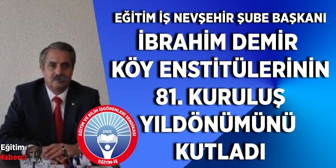 Eğitim İş Nevşehir Şube Başkanı İbrahim Demir;17 Nisan 1940 yılında, dönemin Milli Eğitim Bakanı Hasan Ali Yücel ve İsmail Hakkı Tonguç’un önderliğinde kurulan, Cumhuriyet’in aydınlanma devrimlerinin en önemli hamlelerinden biri olan Köy Enstitüleri’nin kuruluşunun 81. yıldönümünü kutluyoruz.